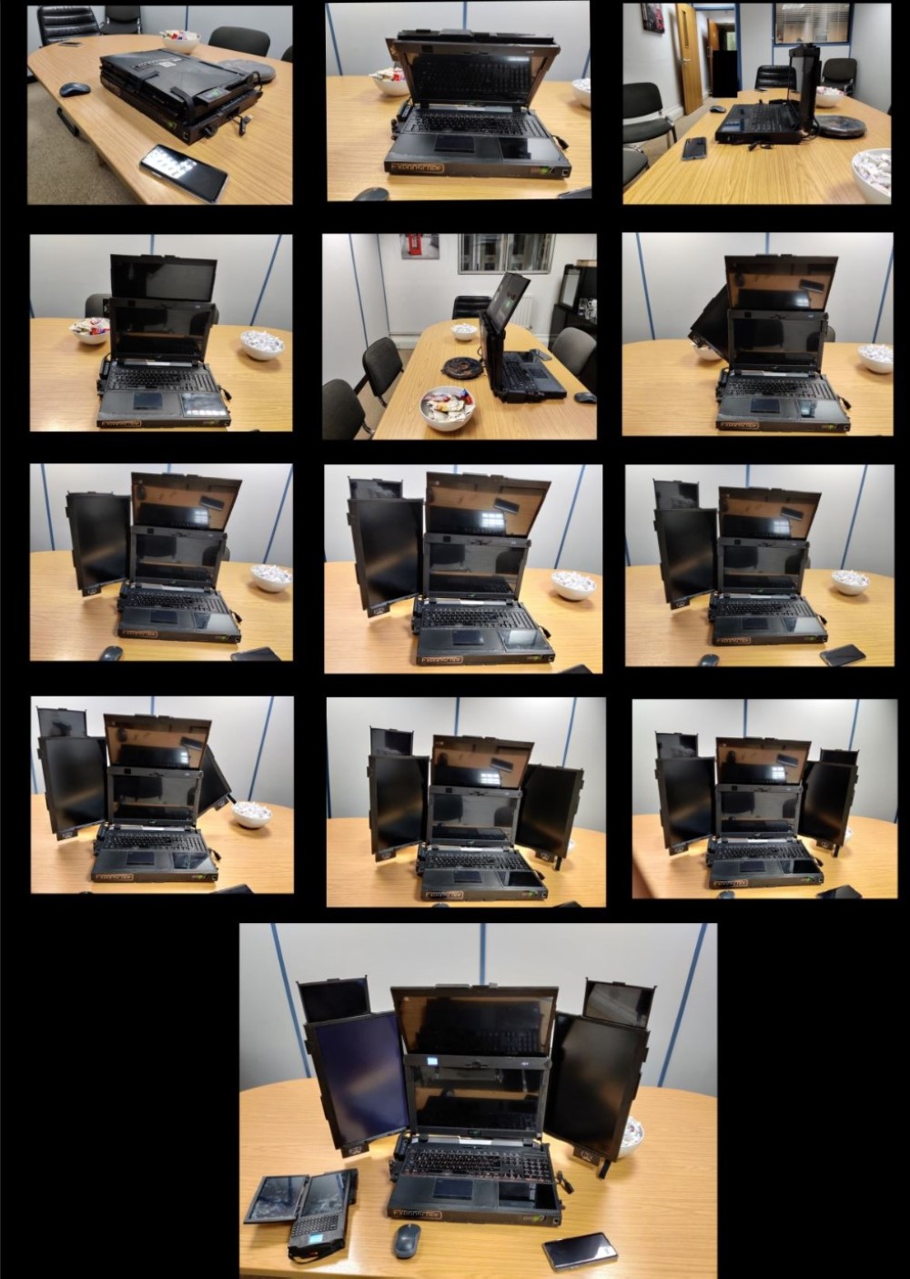 既然是筆電,多少還是得具備一點便攜性。Aurora 7 顯示器可以透過摺疊的方式,一步步將螢幕收起。收起後,此時筆電厚度約 4.3 吋(約 11 公分),重量也相當驚人,10 公斤。沒有人會想每天扛著它上下班,所以它更適合常駐在電腦桌上。