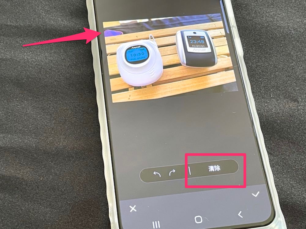 5) 回到相簿,重複 (1)的步驟 點選鉛筆編輯後,這時下方工具列的最右邊就會出現橡皮擦的圖示,選擇後就能點選想要抹去的物件。