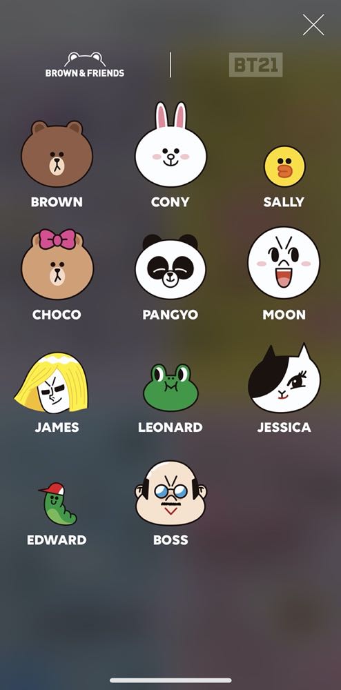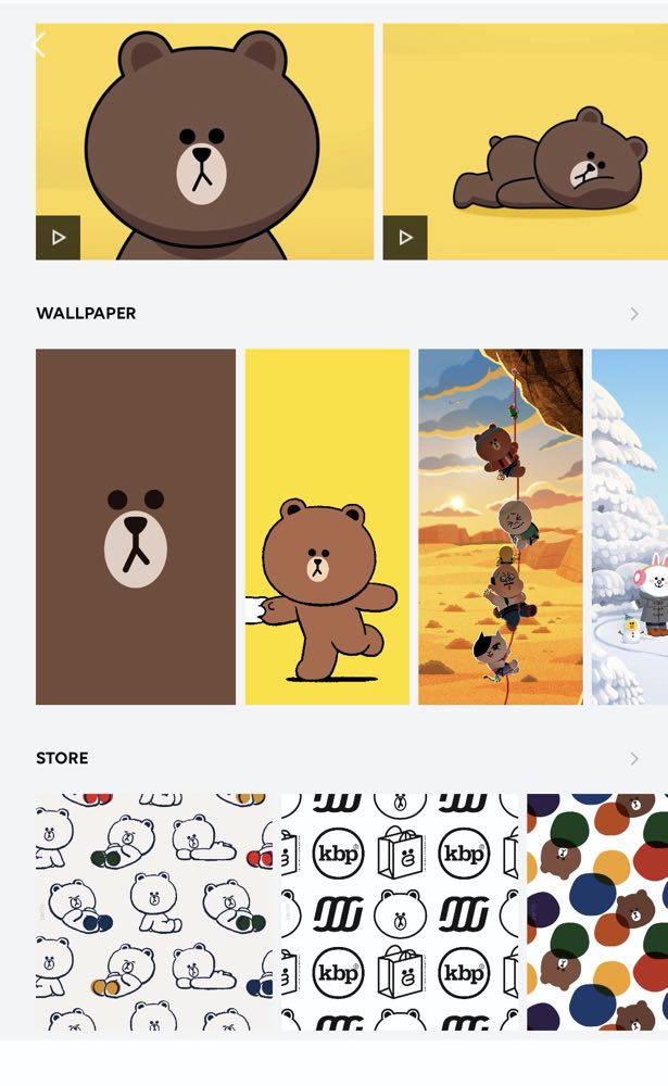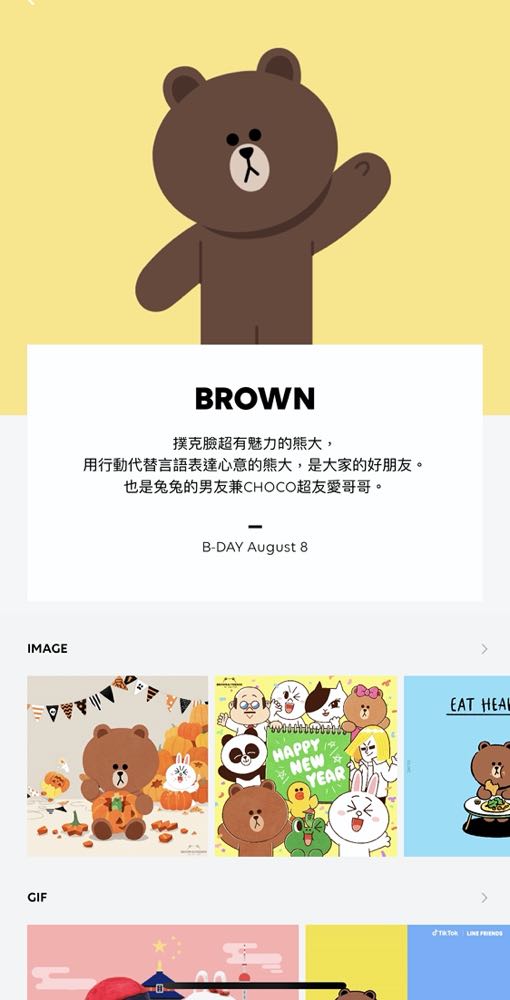 LINE FRIENDS app 可以透過分類來選擇「BROWN & FRIENDS」 或是「BT21」裡面自己喜愛的角色主題,這邊我們就先以 BROWN 為例。