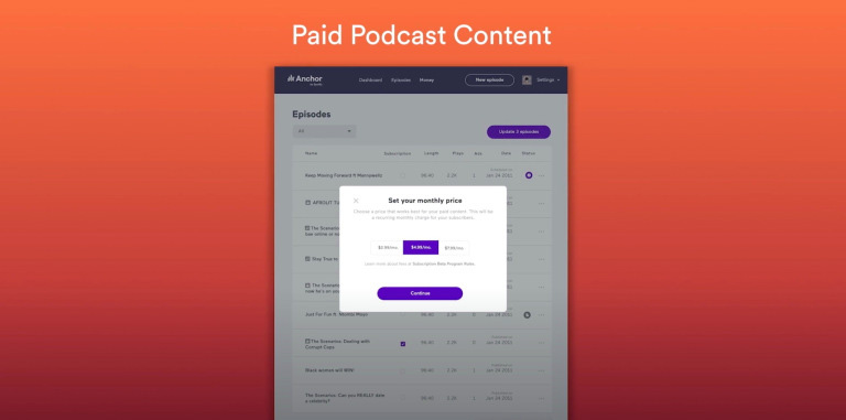 Anchor 是 Spotify 旗下的軟體,提供用戶輕鬆的製作、上傳 Podcast 節目。而這次新加入的訂閱功能,必須在 Anchor 上傳節目才能實現。平台目前雖然僅供訂閱收費,但 Mignano 表示公司正在考慮「單點」收費模式。