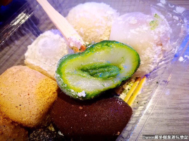 阿Q麻糬八色麻糬包含紅豆、綠豆、花生、芝麻、巧克力、抹茶、芋泥、椰奶總共有8種口味所以又有人稱為八色麻糬,他們家的麻糬本身很軟嫩,可別吃太大口噎到唷,招牌的黑芝麻和花生口味帶點顆粒口感香氣十足,紅豆和綠豆個人覺得差不多都是微甜,芋頭鬆鬆綿綿,巧克力外面有巧克力粉裡頭的巧克力濃郁我喜歡,椰奶外皮沾上椰粉裡頭的餡料香甜,抹茶口味個人覺得一點都不抹XDD,話說每個人喜好口味都不同囉