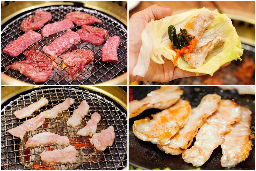 ▼內臟也真的沒什麼腥味,不僅有濃濃的牛肉香氣包裹在裡頭,吃起來緊實飽滿又Q彈,跟牛肉的口感略有不同但同樣好吃啊!接下來要烤的是豬肉,可以使用生菜包裹肉片、泡菜、醬料下去一起享用,吃起來更加清爽無負擔!