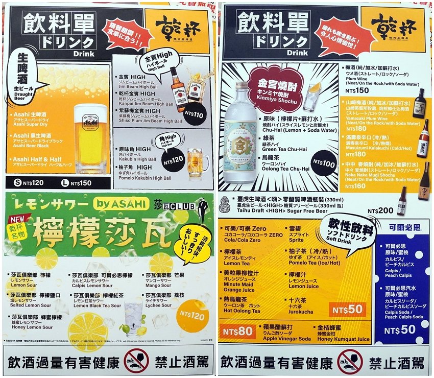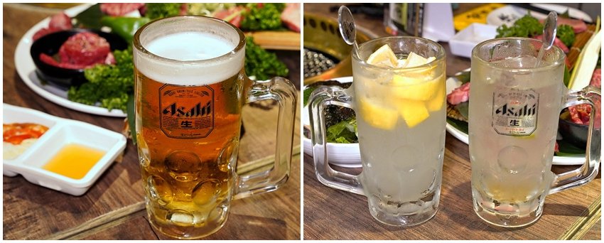 ▼套餐有附120元飲料,也可以補差價換其他單杯飲品!生啤酒搭配燒肉就是爽快,不喜歡酒感的女性朋友也可以點沙瓦類的酒品,喝起來清爽又帶有氣泡感,整個很過癮啊~~(未滿十八歲請勿飲酒)