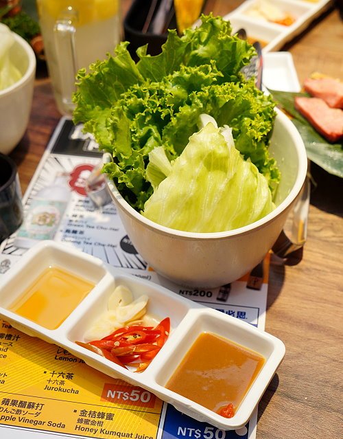 ▼一開始會先送來生菜組合與沾醬、配料,讓大家可以搭配燒肉享用,也會更加解膩開胃!