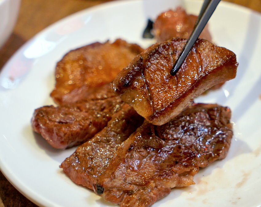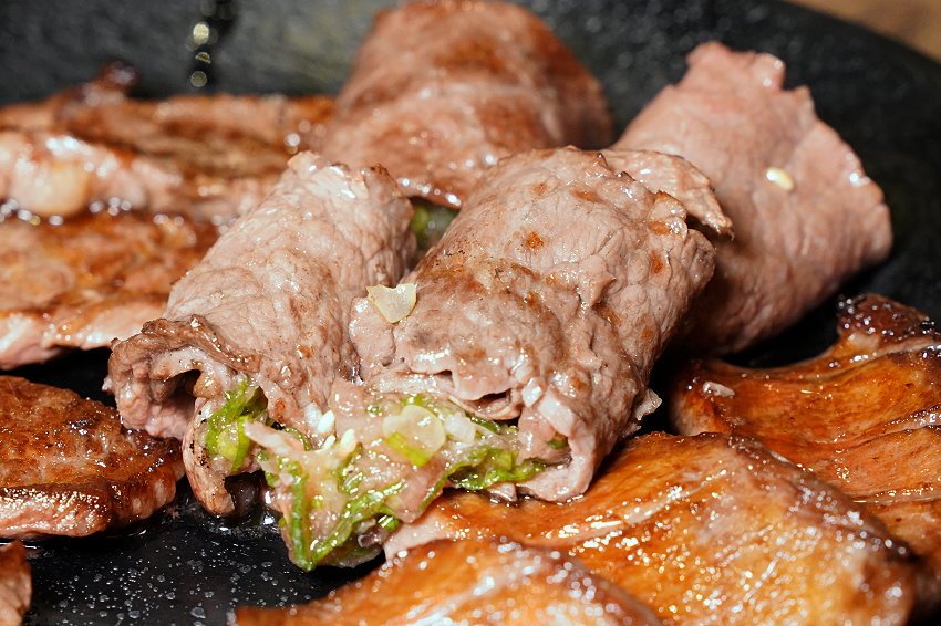 ▼厚實飽滿的牛五花非常肥嫩軟Q,加點鹽巴或是燒肉醬都有不同的風味!