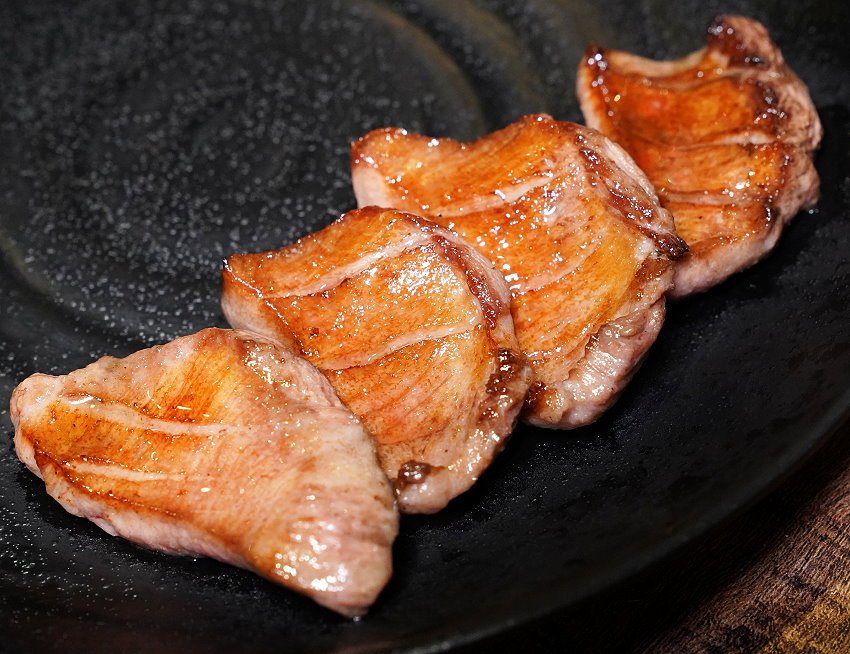 ▼厚切牛舌,一口咬下不僅能吃到柔嫩又飽滿的肉質,還帶點微彈的脆口感,多元的咀嚼口感在嘴裡交錯,好吃到不行!