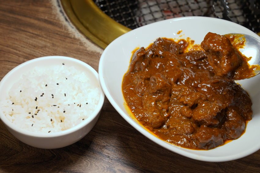 ▼燒肉店的咖哩附的是和牛咖哩,不僅香醇濃郁,而且和牛也給得很大塊,吃起來很滿足!