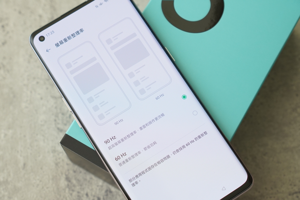 螢幕更新率達 90Hz,並有 180Hz 觸控採樣率,在 90Hz 更新率下螢幕顯示效果非常順暢不會有殘影,不論是一般日常操作或是看影片,都可以有很棒的體驗,當然,如果想要調整螢幕更新率以節省能耗的話,從設定裡就可以調整要使用 60Hz 的螢幕更新率或是 90Hz 螢幕更新率。