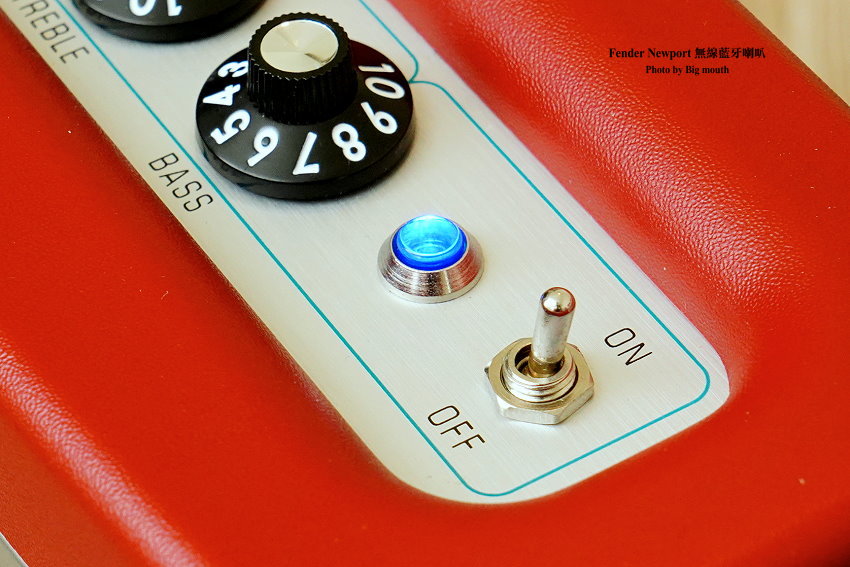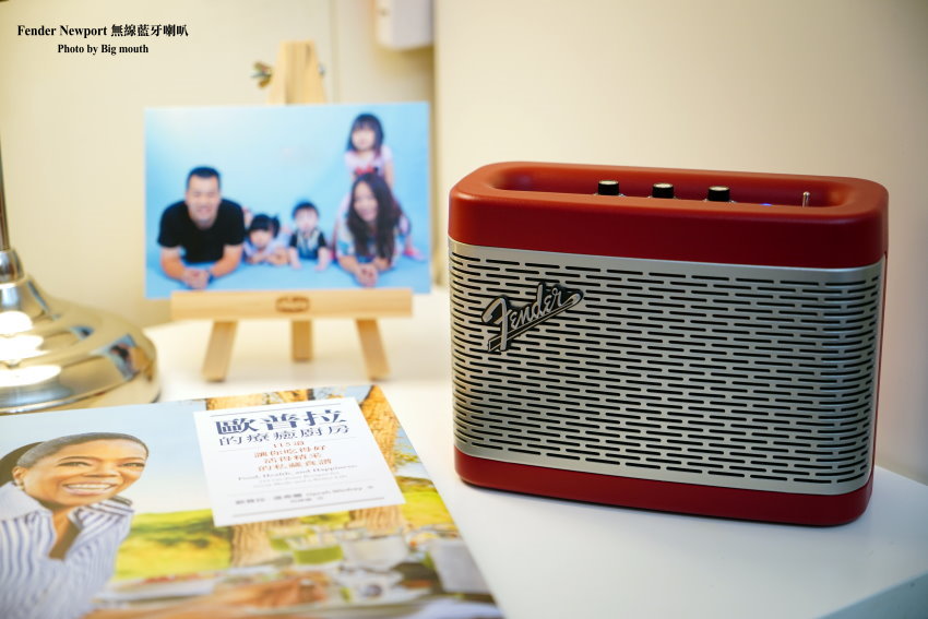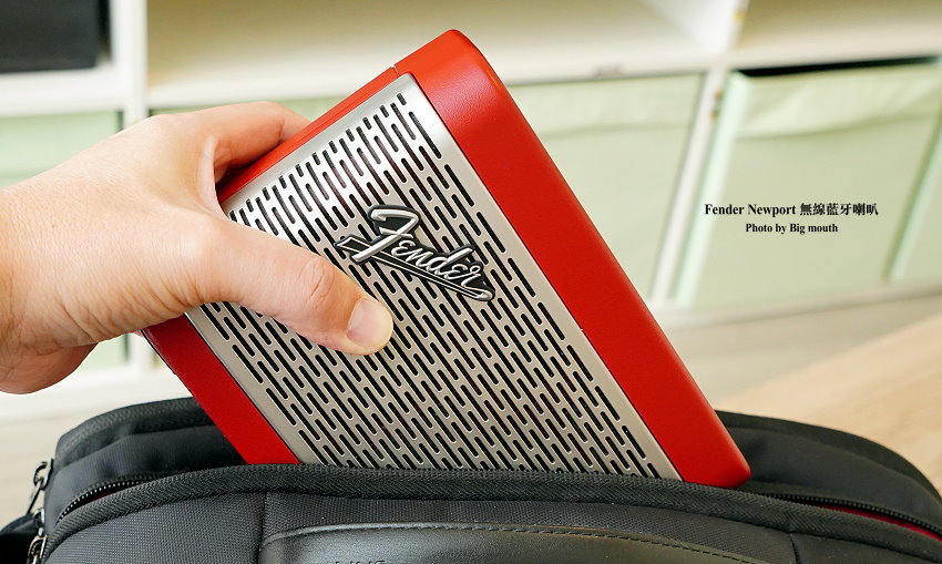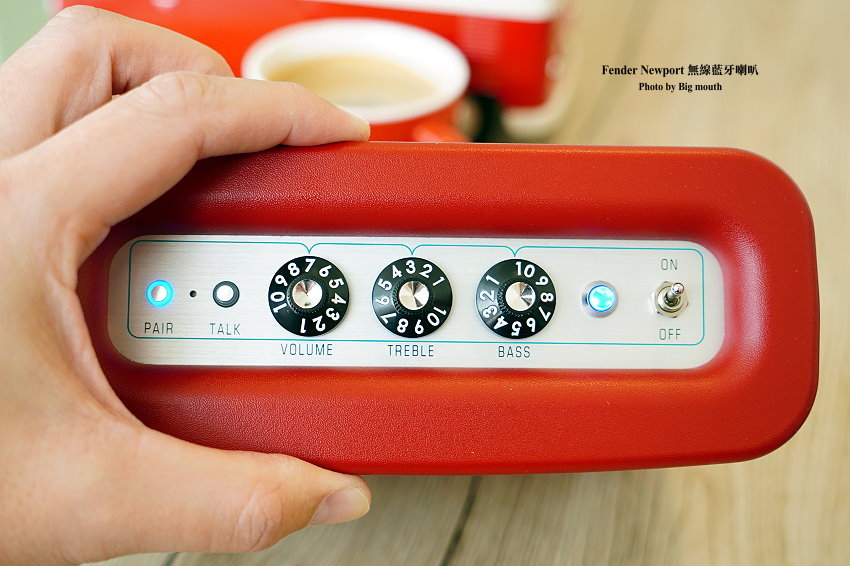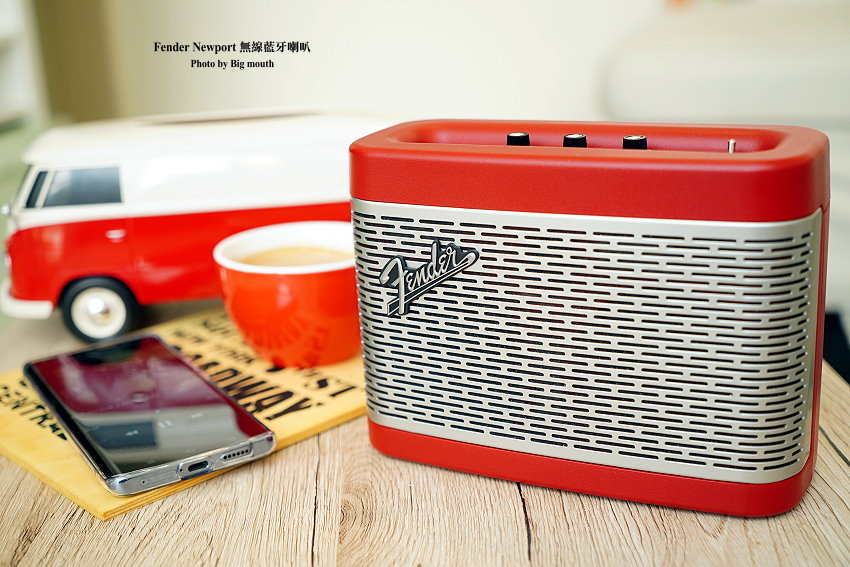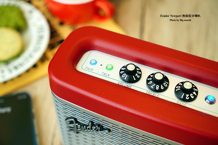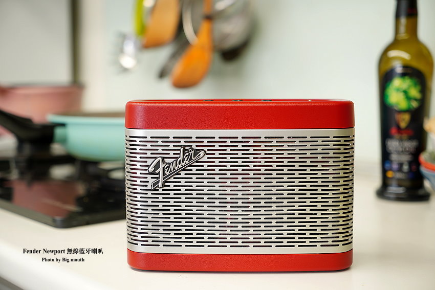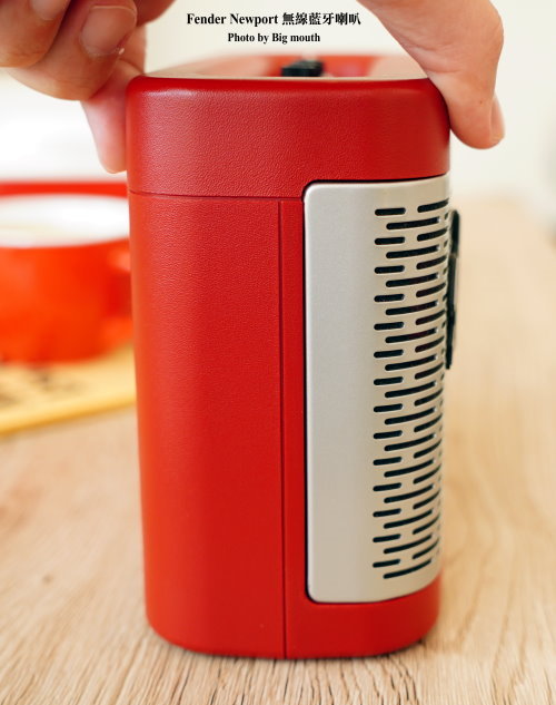 ▼「Fender Newport 無線藍牙喇叭」有推出音速藍、黑色、紅色三種顏色,因為是每天都要使用的小家電,看得順眼喜歡也是很重要的元素,大口毫不猶豫直接下手紅色,因為他們家的紅色是帶有熱情的艷紅色,搭配霧體漆面更增添質感;經典的Fender吉他音箱外型更是首度融入生活視聽產品,有種像電吉他致敬的感覺,跟品牌本身也非常有連結感!