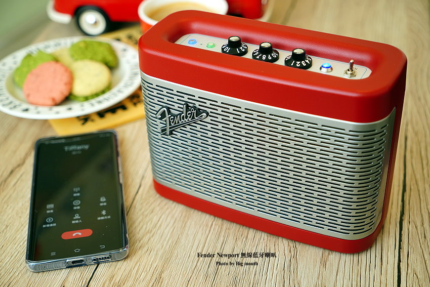 ▼最特別的就是如果聆聽音樂時剛好有人打電話來,也可以直接通話,因為這台「Fender Newport 無線藍牙喇叭」有內建語音通話麥克風,還有回音消除功能,所以可以盡情的講電話,也不會像打CALL IN電話到電台一樣會有回授的感覺,整個很神奇啊!雖然用到的機率可能不大,但是有這個功能還是得給個大大的讚~~