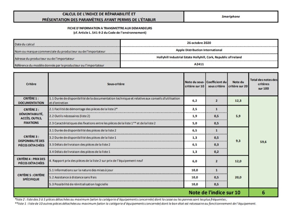 Apple 之所以推出維修指數,是為了順應法國的最新政策。按照法國生態轉型部(Ecological Transition Ministry)最新規定,智慧型手機、筆電、洗衣機、割草機等製造商,必須按照這 5 項標準為自己產品打分數(根據法媒報導,再經由 Google 翻譯而來):
