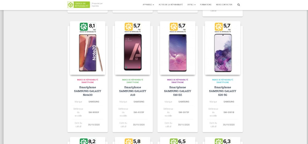 當然,Apple 並非是唯一在法國推出電子產品的製造商。手機類如小米、三星、OnePlus 品牌都能在這裡查看分數(Apple 在網站中尚未列出分數,但你可以在上一段提供的網址中查看)。