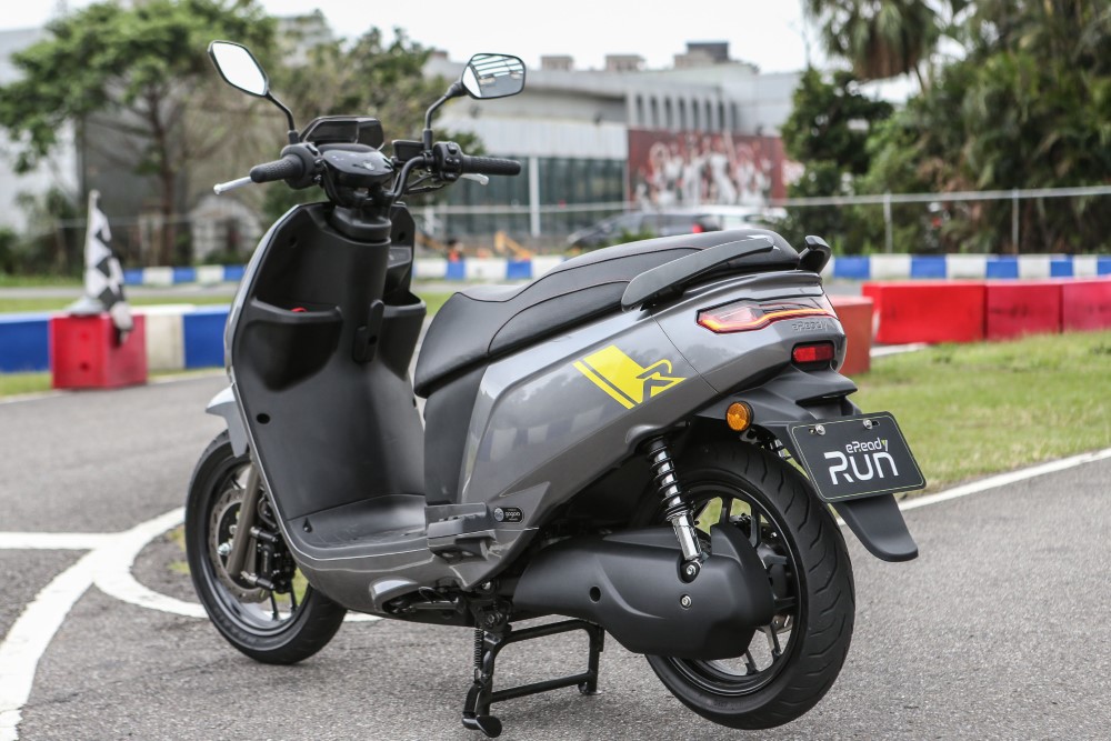 eReady Run 採用當前市售電動速克達最強悍的 7.6kw G2 鋁合金水冷永磁同步馬達馬達(相當於 10.1PS 最大馬力輸出),實現 0-50km/hr 約 3.7 秒的強悍加速性能,搭配的是 CBS 連動煞車系統。前輪採用 14 吋鋁合金切削輪圈搭配 245mm 浪花碟盤與對向四活塞輻射卡鉗;後輪則是 13 吋鋁合金切削輪圈 190mm 通風碟搭配單活塞卡鉗,車重(含兩顆第三代電池) 為 121kg。