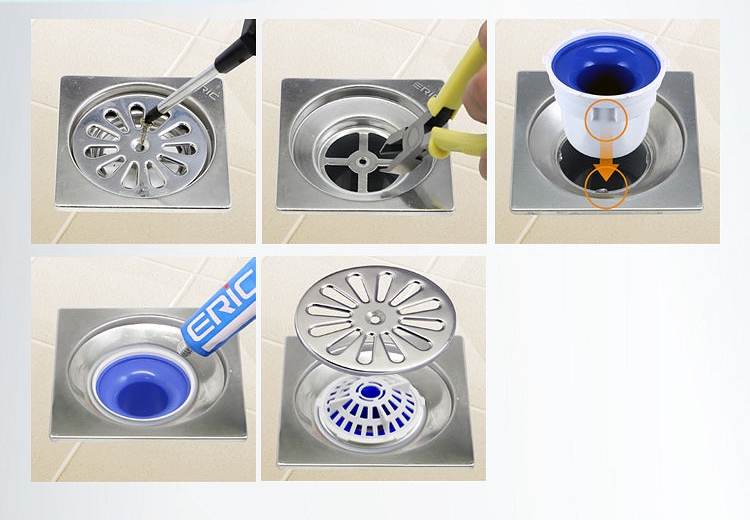 安裝方法也很簡單,只要將排水孔中間的螺絲旋開,用鉗子剪掉中間的十字檔片,將落水頭放入後,記得使用附加的「中性填縫膠」,將落水頭與排水口中間的縫隙阻擋起來,最後套上落水頭的網蓋,再將原本的排水口蓋上即可。
