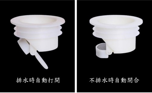 這款落水頭的特色就是操作很方便,採用自動重力水門設計,有感受到水壓時水門開啟;不排水時水門就會自動關閉,如此可以避免蟑蟲、臭氣進入。適用於台灣最常見的 3.5 mm 及 4.3 mm 排水管,只要符合排水口直徑,不管浴室、廚房、走廊、流理台等的排水口都可以使用。