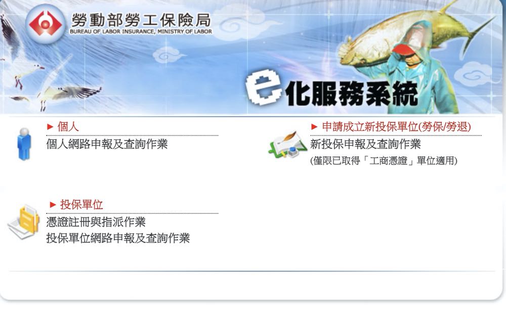 登入勞保局網站「e化服務系統」後,選擇「個人-個人網路申報及查詢作業」再輸入身分證字號、健保卡號、出生年月日以及認證碼,接著輸入戶口名簿戶號,便能進入自己的勞保局資訊。