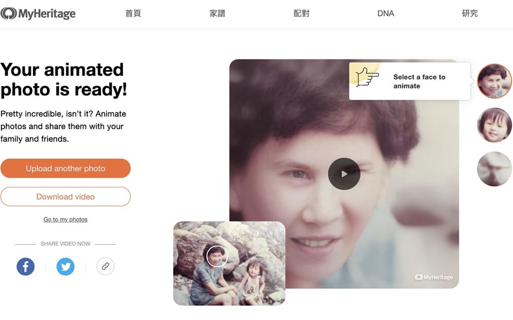 如果照片中是兩個人以上,系統會在旁邊列出判斷出人臉的人像,我們可以從旁邊挑選想要讓他動起來的角色後,就能看到模擬出的效果。