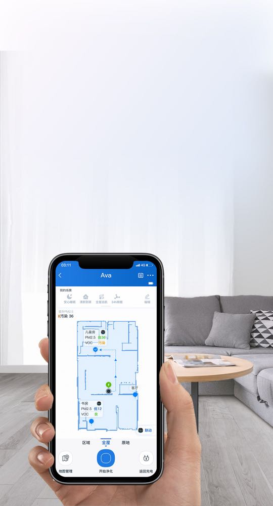 傳統固定型的空氣清淨機,難以帶動全屋的空氣循環,無法實現快速高效的全屋淨化,在不確定空氣品質的情況下,更容易忘記啟動。科沃斯解決空間及便利性,僅需一台 AIRBOT AVA,不需搬動及每間房間放置,同時省下空間、時間以及荷包。