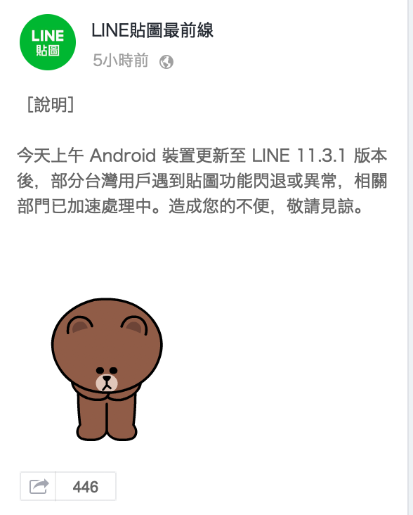 今天(15 日)台灣通訊軟體龍頭 – LINE 又出問題了! 只是這次出問題的是 Android 裝置的 LINE 用戶!根據了解,Android LINE 用戶在下午開始陸續發生無法傳送貼圖的情況,不管是把 app 或是手機不斷重新開啟都是一樣。對此 LINE 也表示這次問題是發生 Android 裝置更新至 LINE 11.3.1 版本所造成的,因此建議 Android 用戶先不要更新版本,他們也在儘速的搶修中。