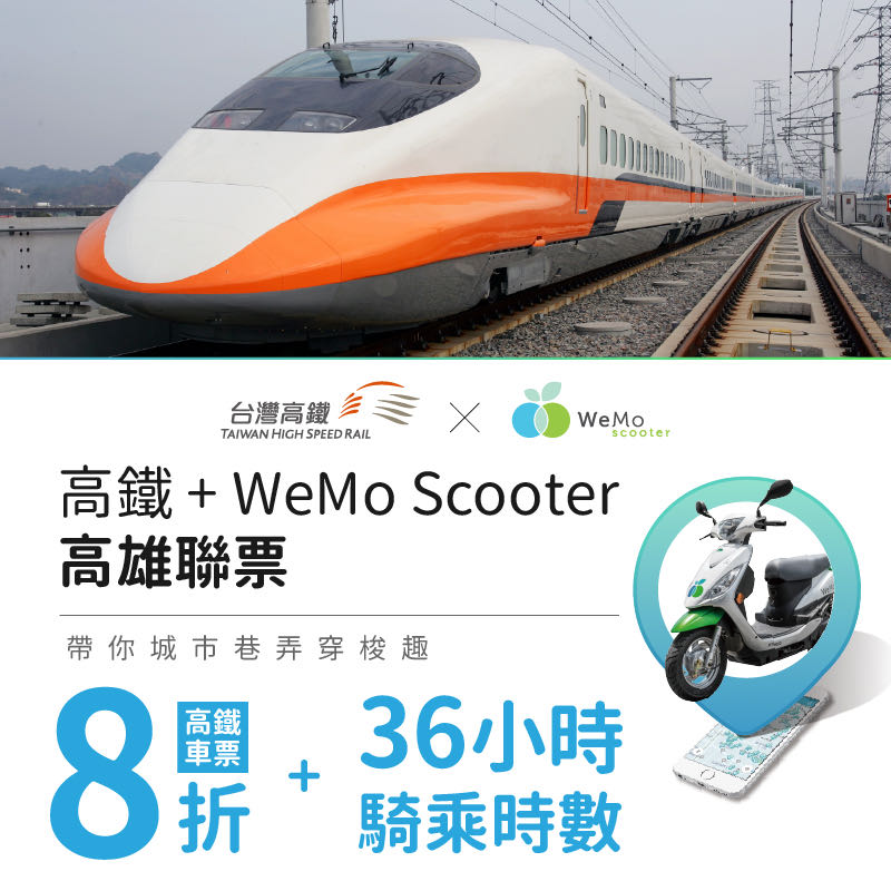 聯票內容:「高鐵標準車廂對號座來回車票8折 + WeMo Scooter 高雄 36 小時」