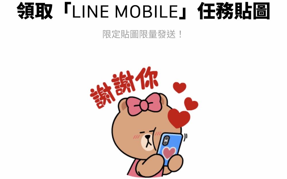 1. 點選 LINE MOBILE 活動頁面 「立即領取貼圖」 並完成註冊