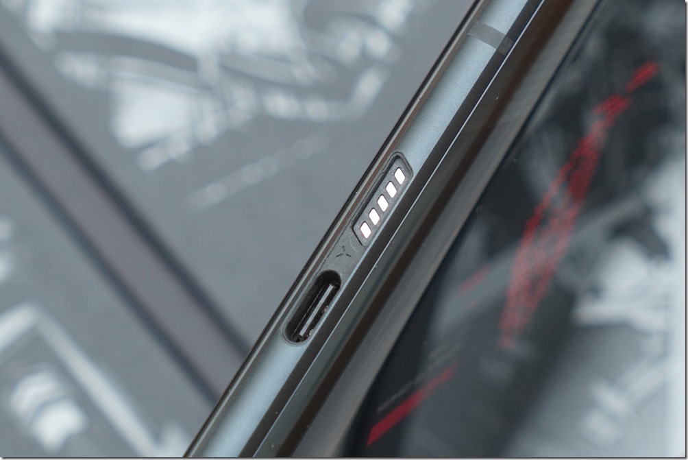側邊也有 Type-C 連接埠和配件接點,手機橫拿時可以使用側邊充電埠充電讓操作更不受線材干擾。