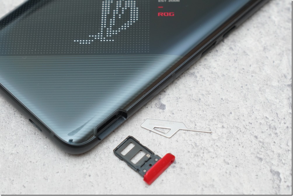 SIM 卡槽也設計得很帥,完全符合 ROG Phone 的電競形象!