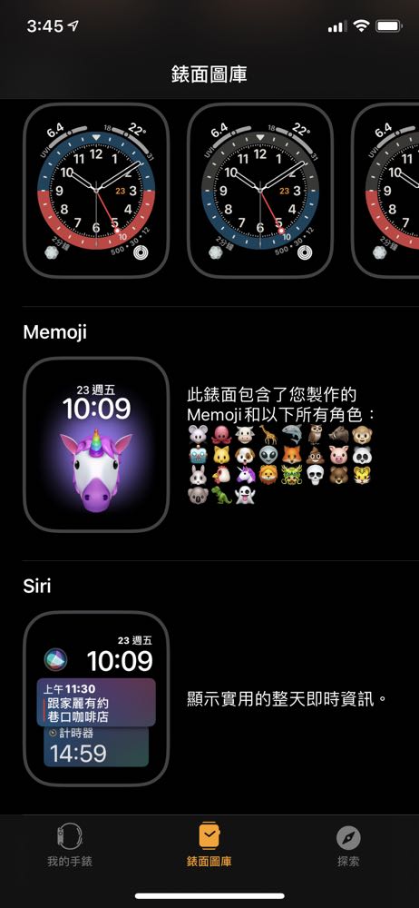 不僅有多種設計款、健身資訊、照片輪播等錶面款式可以選擇,還能直接換上相當有 Apple 辨識度,自己專屬的 Memoji 或是 Animoji 動畫當錶面唷!