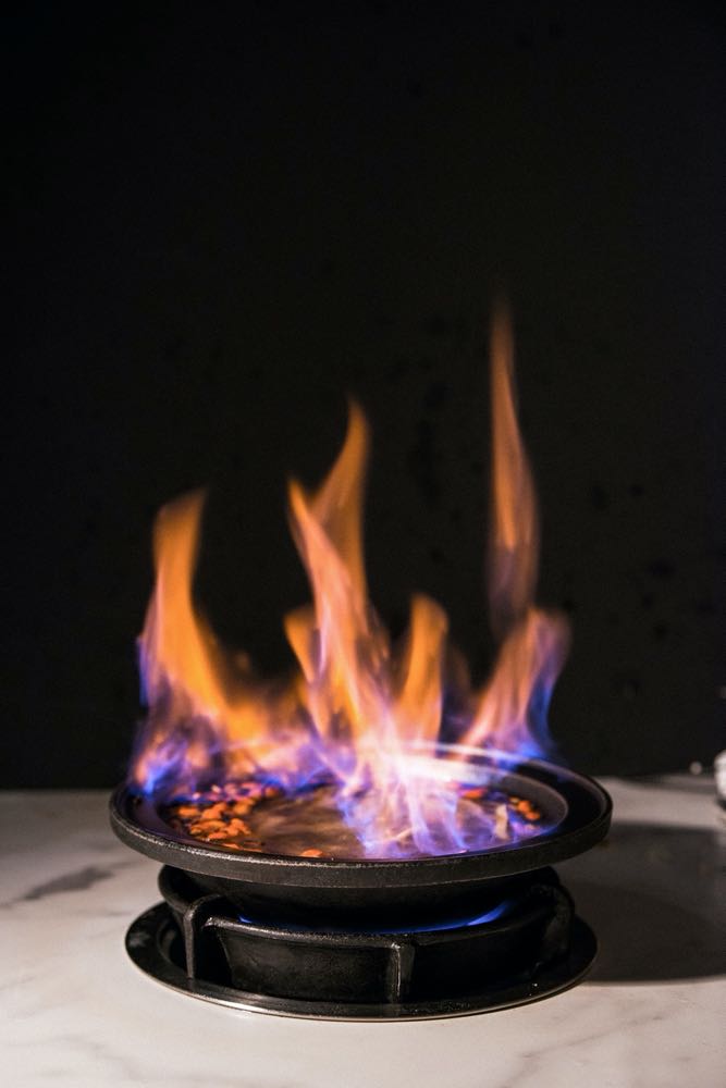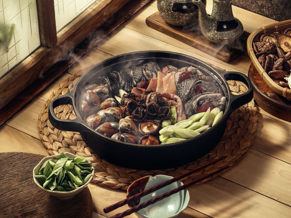 特色一,秉持原創精神從台菜中找尋靈感,最知名的「萬客三寶」人氣燒酒雞鍋系列,靈感正來自台菜燒酒雞,剝皮辣椒烏骨雞更原創爆炒烏骨雞搭配剝皮辣椒與湯汁,創造出獨一無二的清甜微辣口感;爆棚單品麻油炸蛋,不僅靈感來自麻油荷包蛋與佛跳牆蛋酥,更玩翻創新吃法,將麻油炸蛋加入湯鍋吸附湯汁,創造出饕客味蕾的震撼彈!