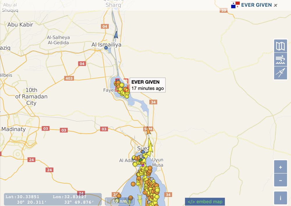如果想要感受一下開蘇伊士運河的壓力有多大、難度有多高,也可以試試看這個《穿越蘇伊士運河》模擬網頁唷!