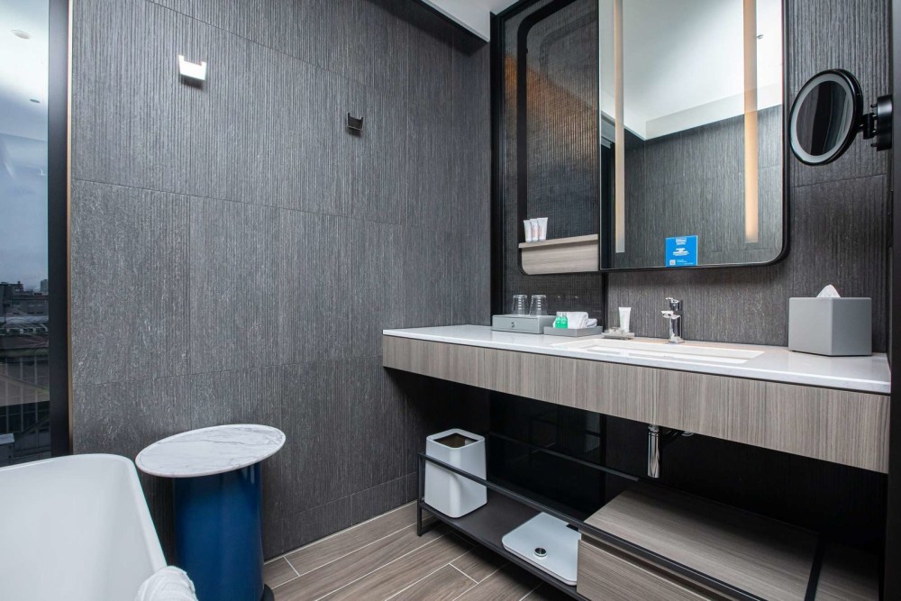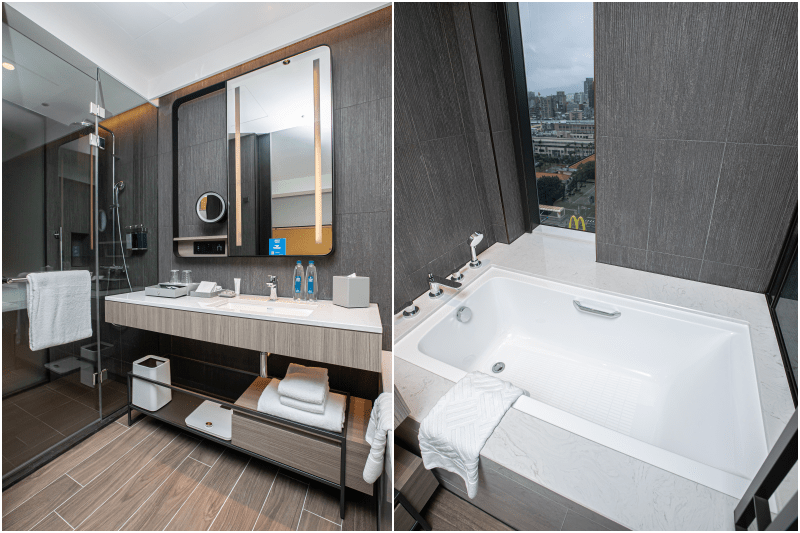 最後,就是台北時代寓所豪華客房的浴室部分,首先這是非常寬敞的浴缸