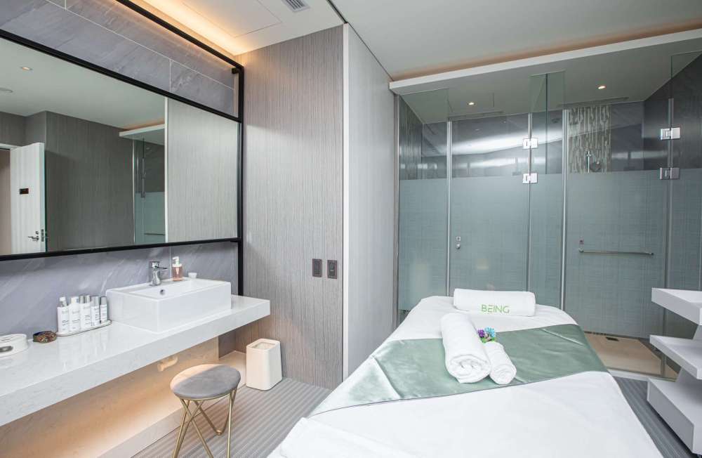 BEING spa的空間很舒適,基本調走白色跟木質設計,就是讓你一進到裡面就很放鬆的狀態
