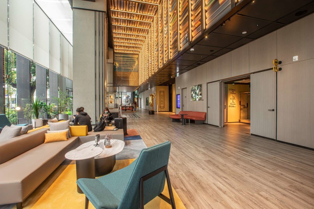走進大廳,一整面接連不斷的落地玻璃引入室外光線,你會有一種身處陽光屋的舒適感