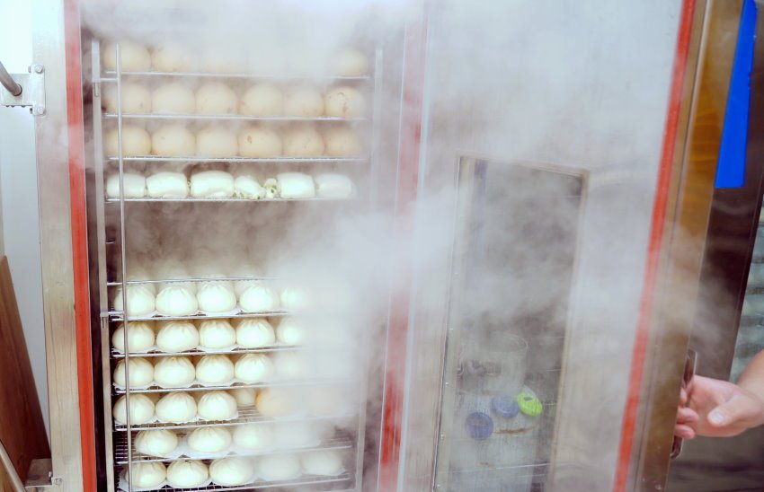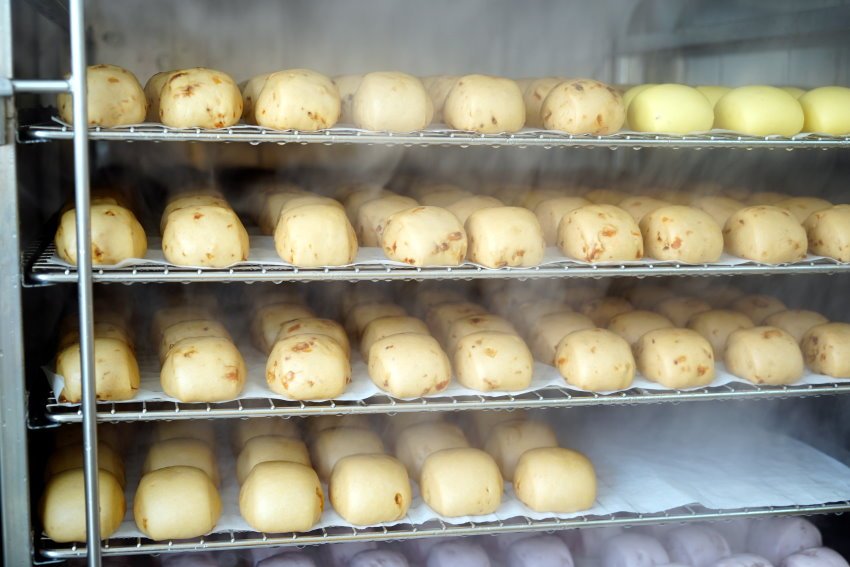 ▼做好的饅頭還得進入發酵箱裡頭待好待滿,才能送去蒸熟!