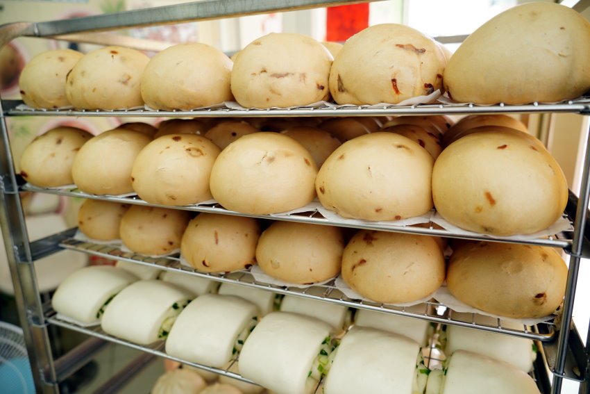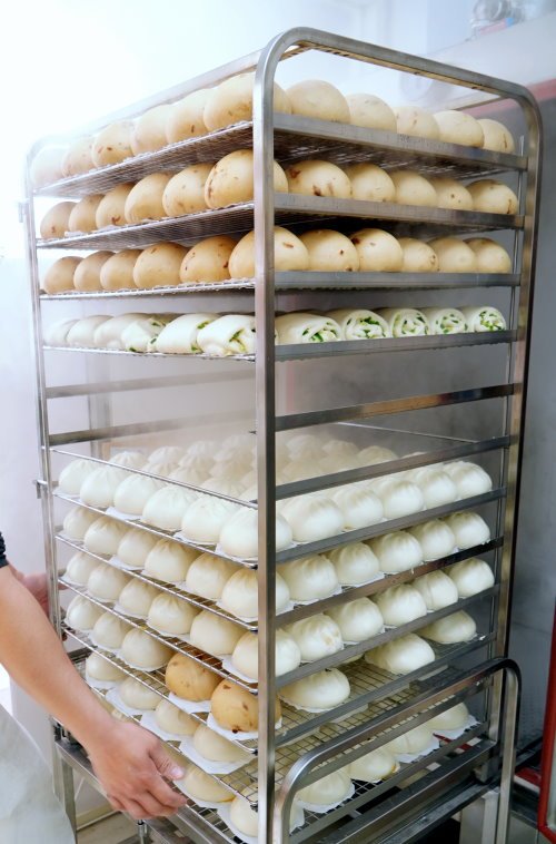 ▼蒸好的包子饅頭還得放在架上吹涼,確定冷卻後才會進行包裝!