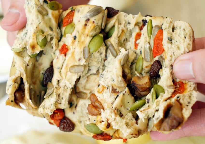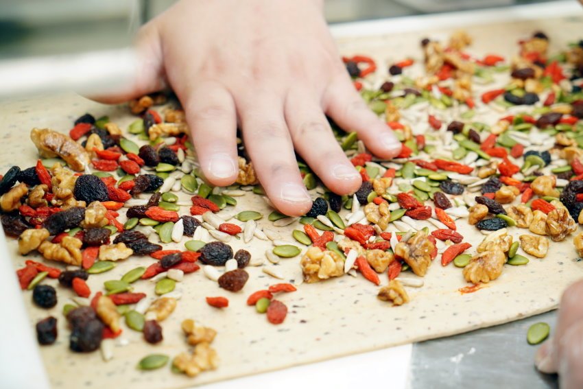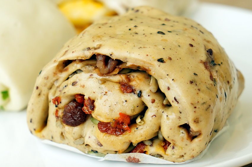 ▼雜糧堅果捲,是店內的冠軍商品,麵皮除了加入寶山黑糖之外,裡頭更是採用枸杞、黑芝麻、白芝麻、十穀米、核桃、葡萄乾、葵瓜子、南瓜子等10幾種雜糧堅果入餡,整個餡料更是多到要滿出來!