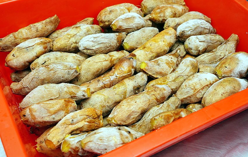 ▼烤好的地瓜散發出微微香氣,不分大小尺寸,通通包進去就對啦(笑)!!