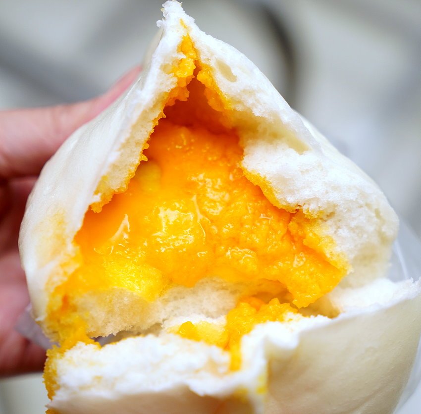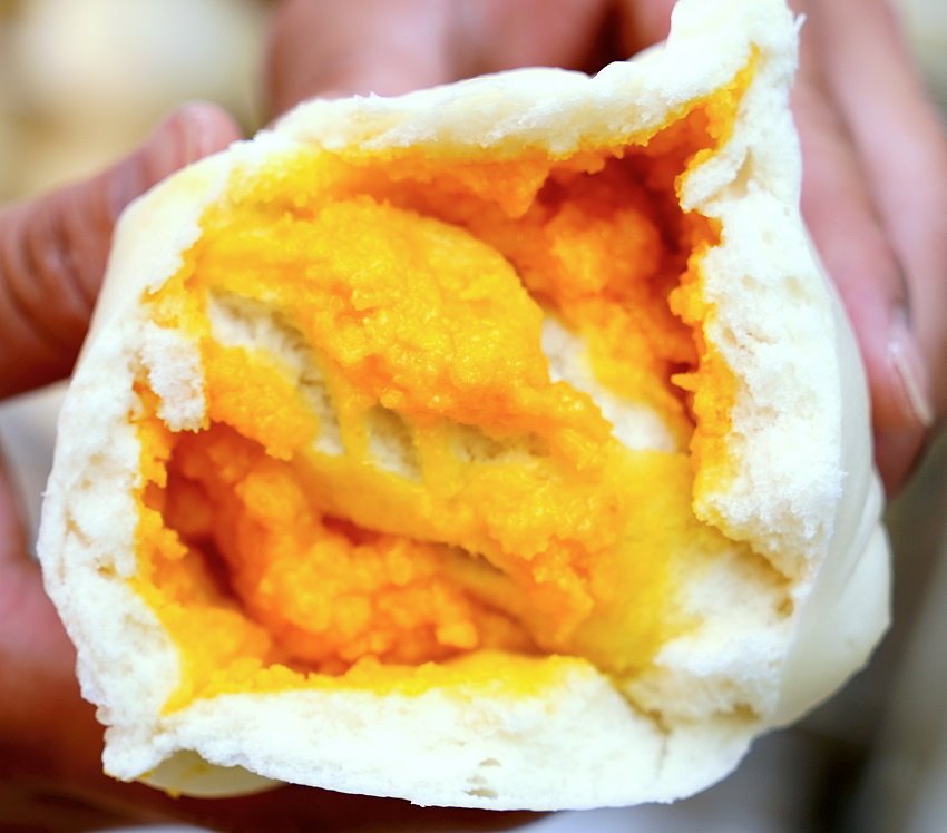 ▼金莎包,這款也是我們的愛!!內餡採用烘烤過的鹹蛋黃搭配奶油提味,雖然不像港式流沙包會流瀉而下,但是比例調適得非常剛好,吃多了也不會覺得膩口!