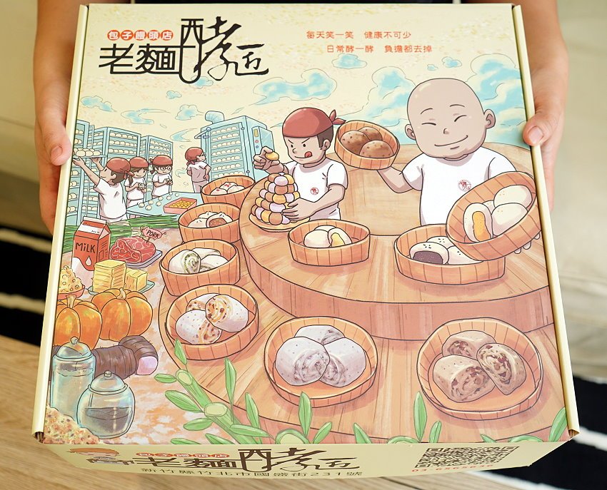 ▼嘿嘿~~我們也帶了一組「小家庭宅配禮盒」回家,不僅可以當作伴手禮,想要選擇全家店到店也沒問題!!上頭還畫有Q版的老闆、夥伴正在製作包子饅頭的過程,據說還是裡頭的員工自行繪製的,也太有才了吧!大家可以選任選4包含運費500元,或是任選8包含運費850元,怎麼算都是直接買8包比較划算啊(笑)!