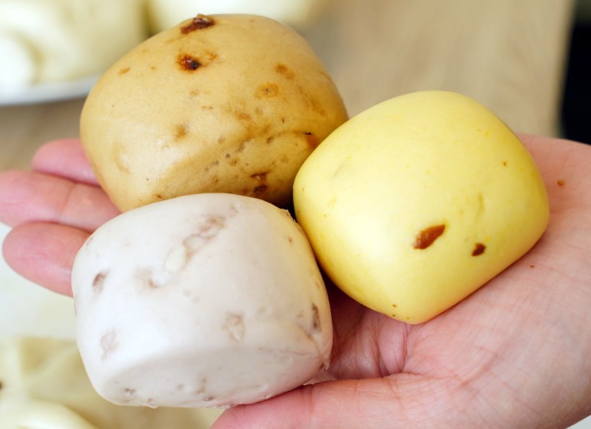 ▼三色饅頭,個頭小小的很是討喜,大人約莫兩三口就可以秒殺一顆,對於小朋友來說份量也很剛好,吃完一顆也不會過飽!大家別小看這幾款小饅頭,裡頭也都是真材實料,像是南瓜口味甚至連南瓜皮都打進去啦~~既能吃到南瓜的清甜,連營養通通都吃下肚,不管大人適合,小孩也很愛!