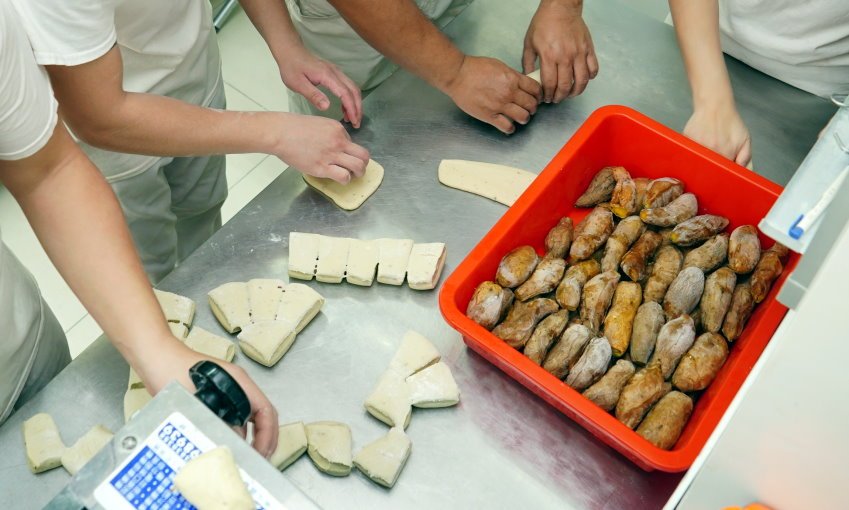 ▼他們家是採用機器搭配手作,滿滿的餡料鋪好鋪滿,真的很療癒啊!