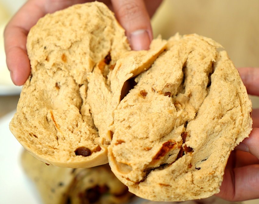 ▼說真的一開始聽到老麵饅頭就聯想到硬韌的口感,沒想到他們家的饅頭完全顛覆我們的想像,不僅口感細緻、柔軟,咀嚼中還帶有微微韌性,兼具適口性與老麵的口感,而且完全不乾口不卡喉,真的是很神奇啊!這款桂圓饅頭不僅帶有淡雅樸實的黑糖香氣,加上煙燻桂圓整個香氣、層次都提升不少,不會有人工香精那種濃重膩口感,吃起來天然又順口,讓人一口接一口停不下來!
