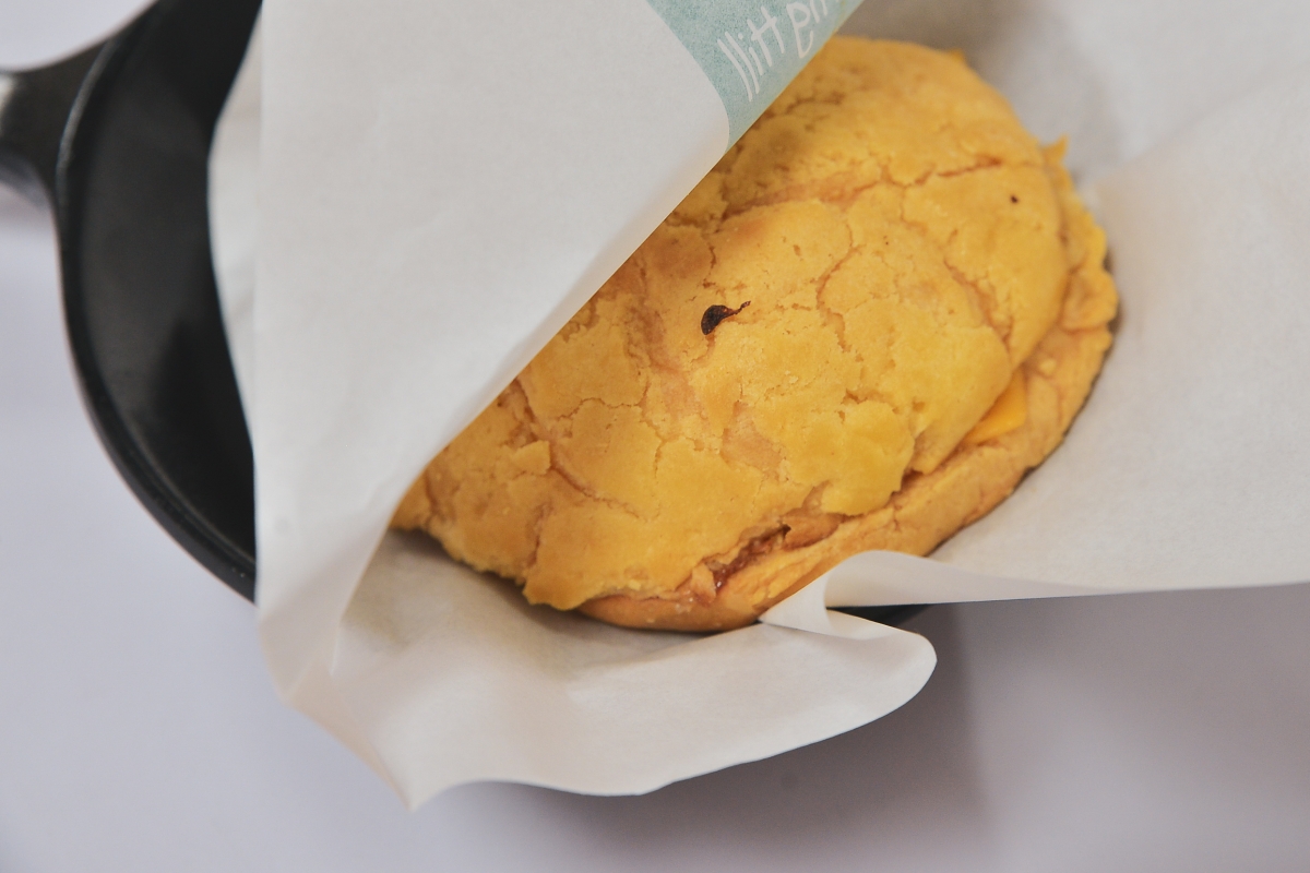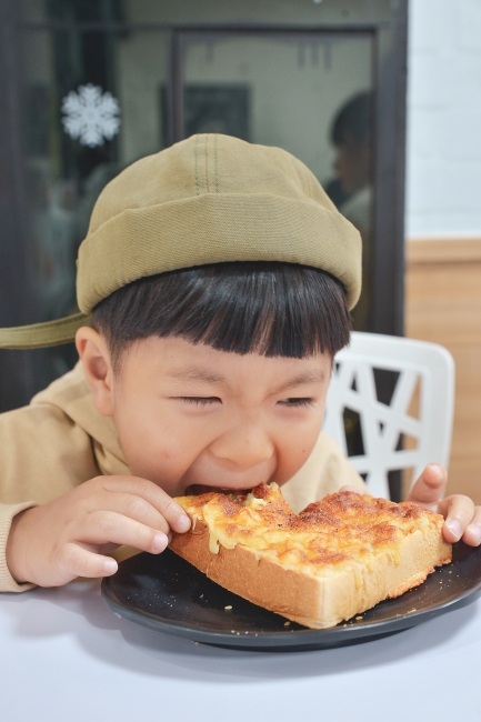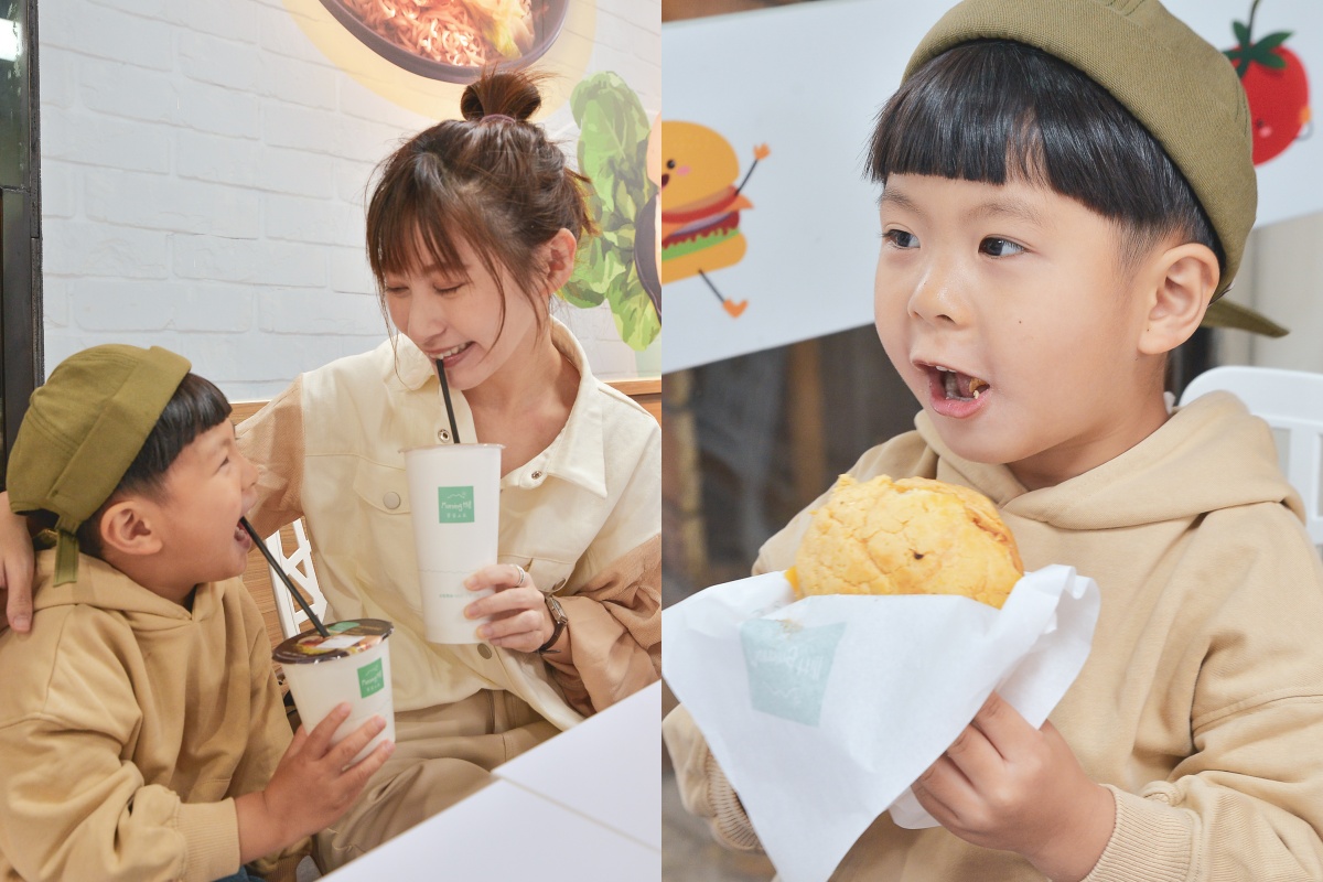 我最近很迷戀菠蘿堡,喜歡上面烤得香酥脆脆的口感,夾入一片起司增添風味,鹹香鹹香的好滿足啊!連小孩都吃得很開心~這個菠蘿堡大部分都被阿福吃光了啊~如果大人自己也要吃的話,記得幫自已點一份哦!哈哈~