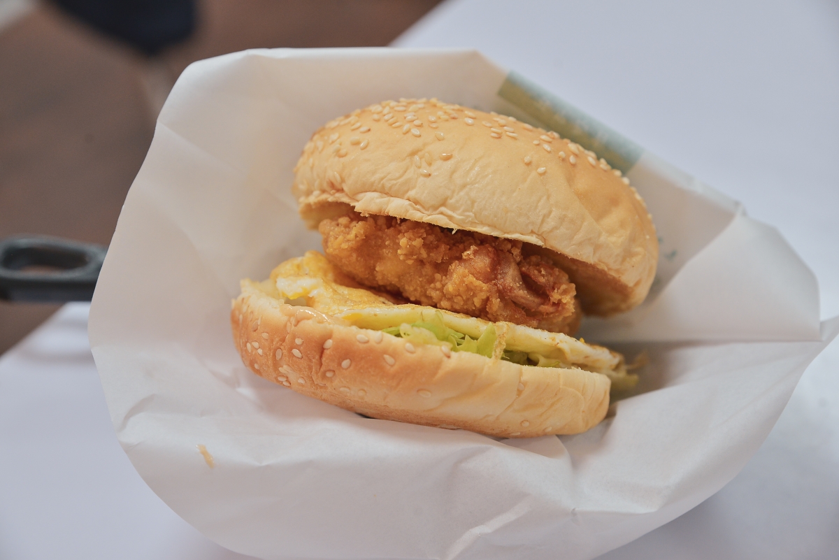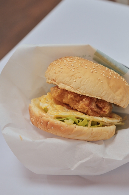 早安山丘的漢堡麵包是蓬鬆柔軟的樣子,看到就覺得超療癒!裡面包著生菜、煎蛋、酥炸好的雞腿排,肉質不會太乾,整體口味還不錯,份量也很剛好。因為我真的吃過蠻多家早餐店,以前也是天天在外面吃早餐,吃過超多早餐店(相信有看過我早餐整理文的人就知道拉)很多早餐店的漢堡麵包都會壓得扁扁爛爛的,看了就沒食慾,那天在早安山丘吃漢堡,一看到可愛的漢堡麵包就覺得很開心~是色香味俱全的最佳詮釋啊!
