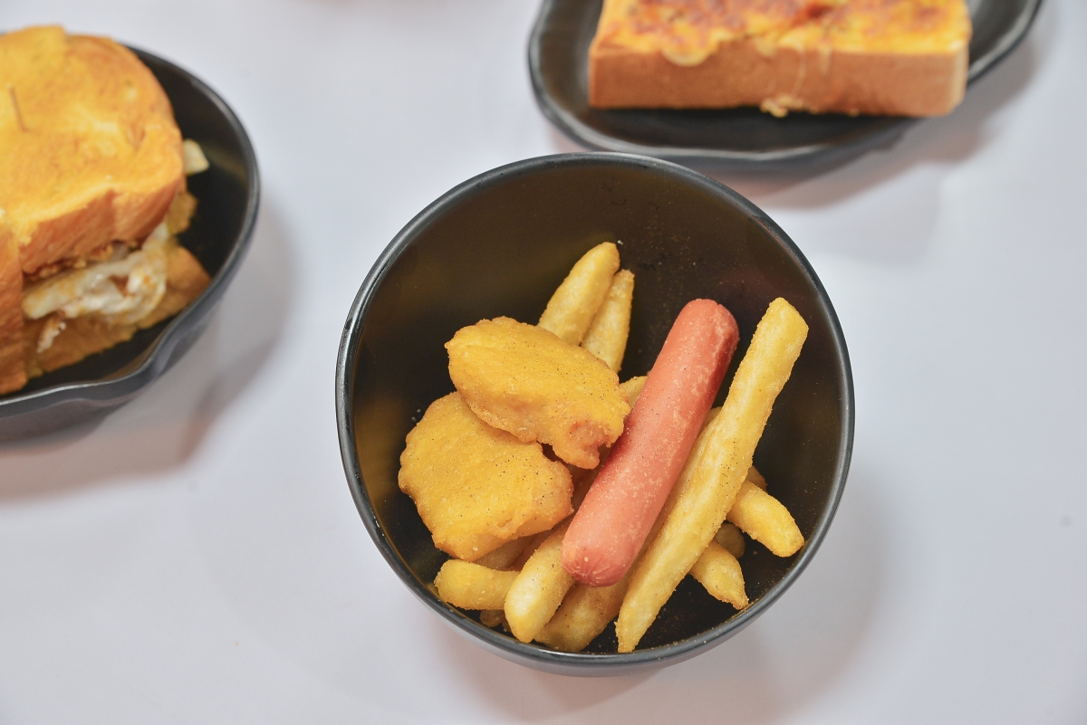 任一份餐點加 39 元就可以享有雞塊兩塊、熱狗、薯條、15元飲料(可補差額換購),這就是小孩愛吃的炸物組合呀!但我覺得 39 元可以吃到這些綜合炸物,而且因為炸物的份量剛好,大人給孩子吃不會太有罪惡感,小孩又開心,想要更安心的話就是 15 元飲料選豆漿!(完美安排)