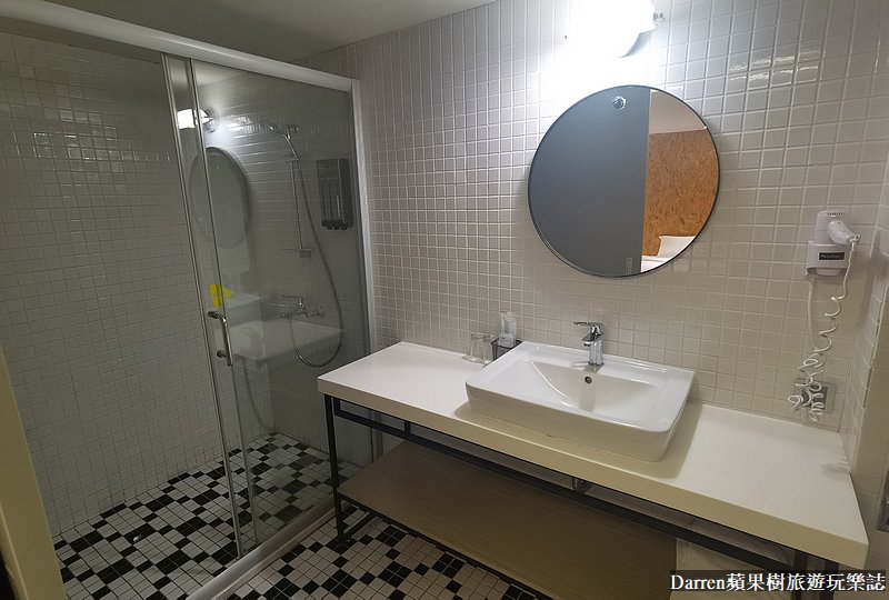 台南承億輕旅雙人房的衛浴空間是乾濕分離,裡頭意外寬敞原本以為會很窄的,很喜歡黑白馬賽克設計,浴室內也有附上簡單備品