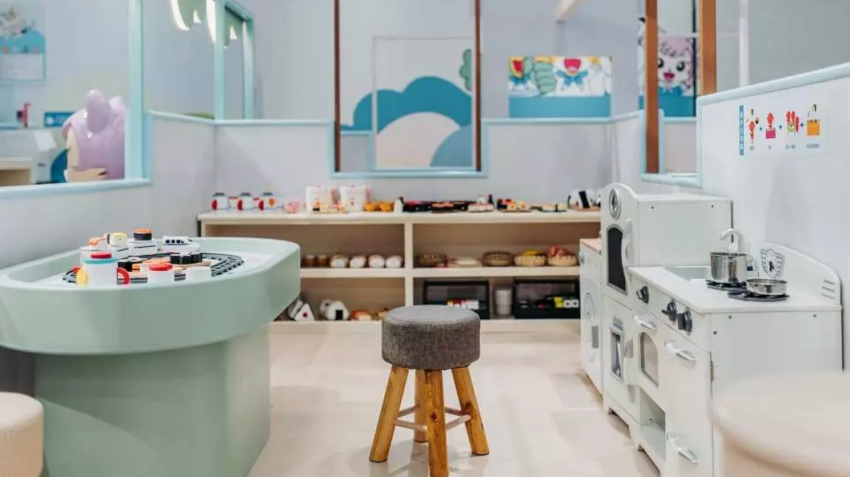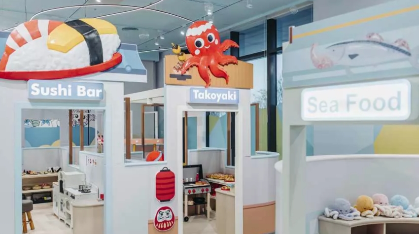 琪琪夢想體驗城是巧虎夢想樂園的家家酒區,裡面規劃海鮮店、烘焙坊、章魚燒店、冰淇淋店、加油站、壽司吧、花店⋯等職業體驗,可以讓小朋友玩扮家家酒,而且全部都是使用木製玩具,想當初幫女兒買過光一組Mentari廚房就花了好幾千,這裡種類這麼多玩更爽。