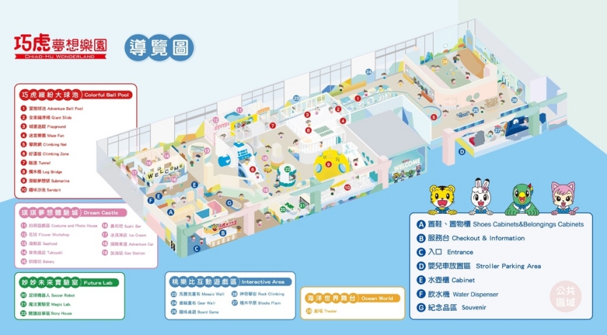 巧虎夢想樂園是全台第一間以探索海洋為主題的室內親子遊樂館,近300坪的空間,裡面有巧虎繽紛大球池、琪琪夢想體驗城、桃樂比互動遊戲區、妙妙未來實驗室和海洋世界舞台五大場區,整體適合學齡前的小朋友來玩,而且是不管晴雨都可以來的桃園親子景點。