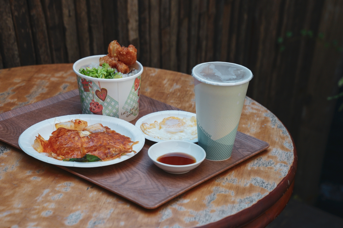 竹北 Kurashi 早餐店從 2018 年 1 月開業至今已經三年,在去年疫情期間停止內用,僅提供外帶,在去年底的時候,將旁邊雜草叢生的小巷子整理一番,變成了綠意盎然的開放式小木屋用餐空間。座位數不多,但是可以滿足部分人想趁熱吃或是悠哉享受早餐的心情。