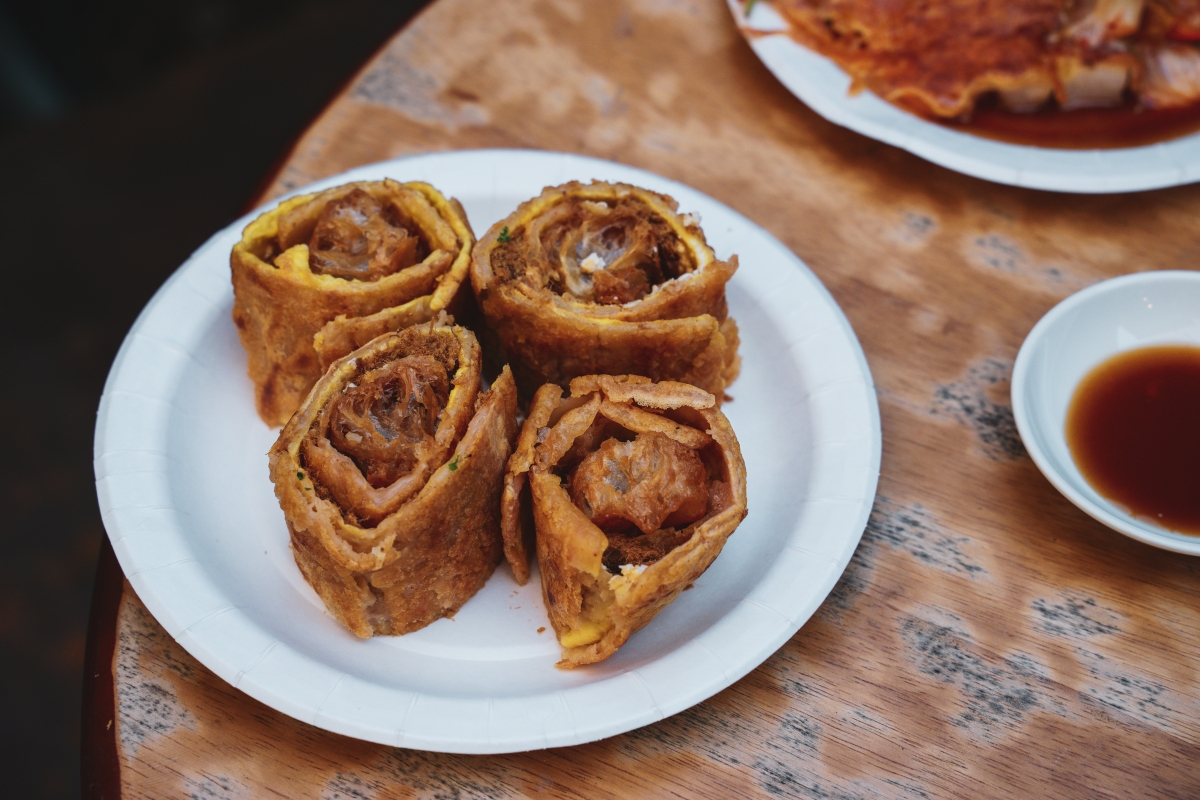 Kurashi 的粉漿蛋餅大家都知道,熱熱的吃,外酥內軟,飽滿厚實的口感非常好。油條三兄弟裡面有油條、鹹蛋、肉鬆,我覺得口味搭配起來非常好,我很愛,後來都點這個口味。份量雖然只有四塊,但餅皮帶有厚度,吃起來很有飽足感。